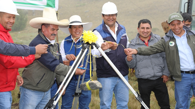 En medio de un ambiente festivo; a más de 2 mil 956 metros sobre el nivel del mar, el director regional de Agricultura Néstor Mendoza colocó la primera piedra de la qocha “Tres Cruces” en la comunidad campesina de Tangalbamba en el distrito de Condebamba, en la provincia de Cajabamba.