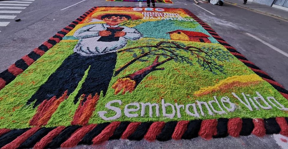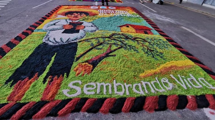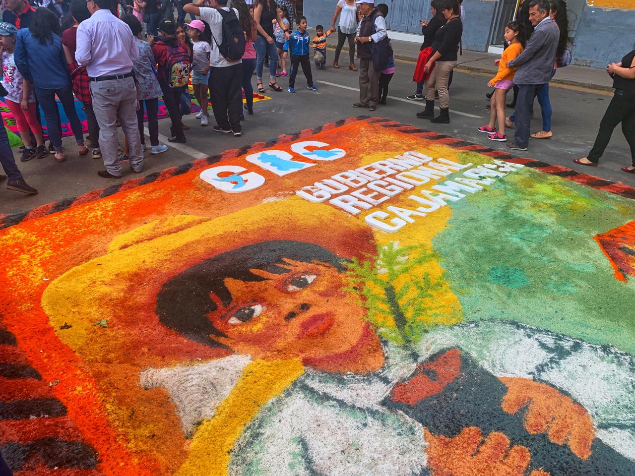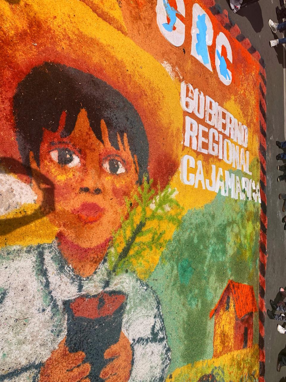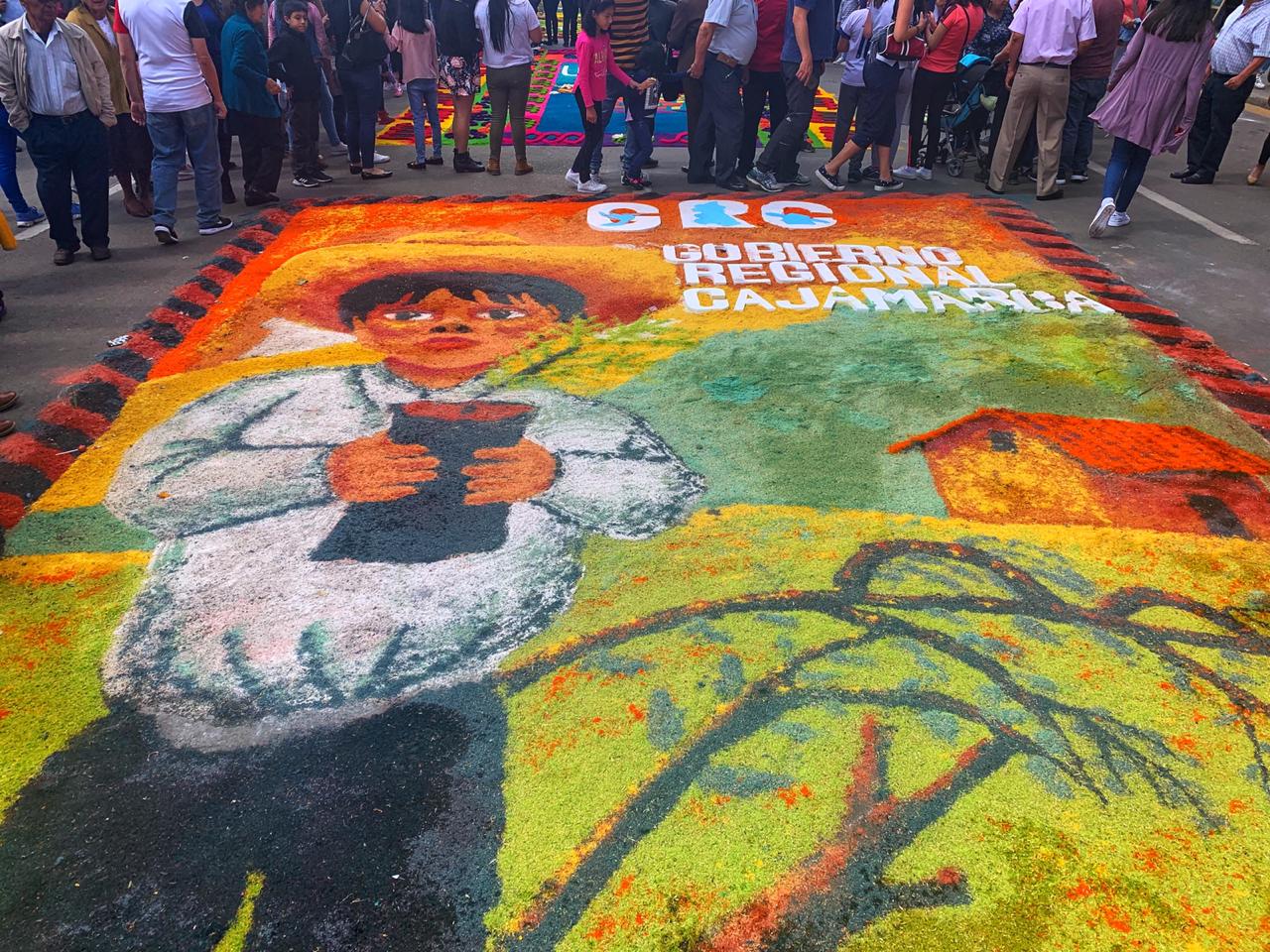 El Gobierno Regional de Cajamarca presentó una atractiva alfombra en la procesión de Corpus Christi con un motivo que promueve la forestación y reforestación de la región como acción del cuidado de nuestra ecología, en un claro compromiso de la actual gestión regional por la vida y el ambiente.