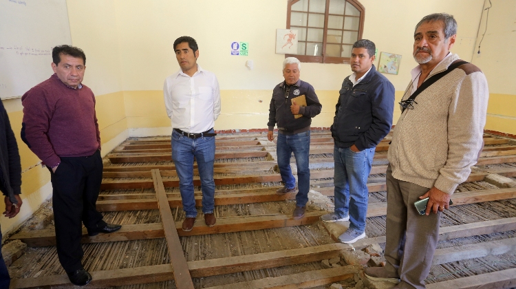 El gobernador Roger Guevara sostuvo una reunión de trabajo en las instalaciones del instituto superior pedagógico público “Hermano Victorino Elorz Goicoechea” con el objetivo de solucionar las controversias en la ejecución de las obras en ese recinto. La autoridad recorrió los ambientes del pedagógico comprobando la real situación de la infraestructura y el deterioro muebles y equipos.
