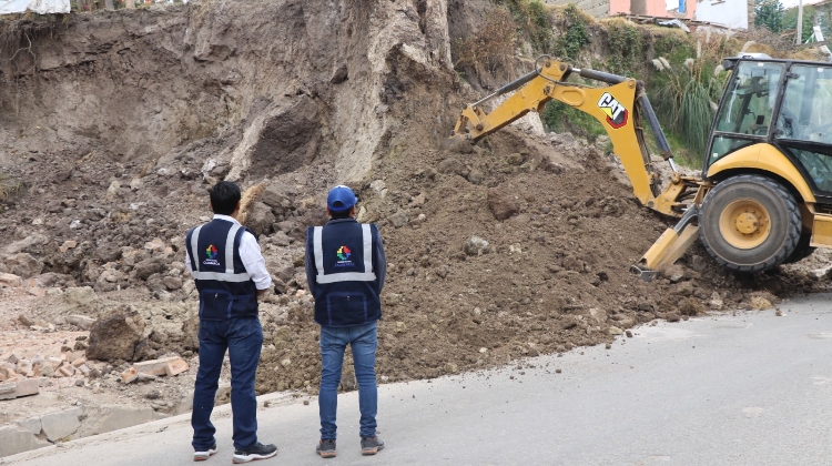Maquinaria del Gobierno Regional de Cajamarca viene haciendo limpieza en puntos afectados por la caída de tierras, el objetivo es salvaguardar la integridad de la población en esta zona de Cajamarca.
