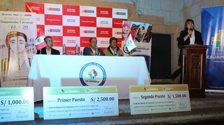 El Gobierno Regional de Cajamarca, a través de la Gerencia de Desarrollo Social, premió a los ganadores del concurso “Vanguardia Literaria” 2024. La gerente regional Rocío Portal Vásquez tuvo a cargo la entrega de reconocimientos en las diferentes categorías.